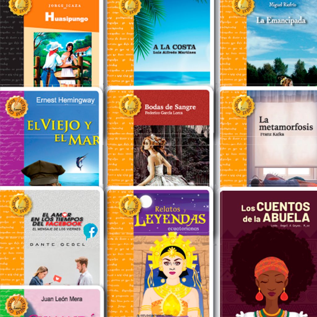 Desde las épicas clásicas como La Ilíada y La Odisea, hasta joyas modernas como El amor en los tiempos del Facebook, pasando por relatos inolvidables como El Principito y Platero y yo. Además, incluye exponentes de la literatura ecuatoriana como Huasipungo y A la Costa, fundamentales para comprender nuestra identidad.